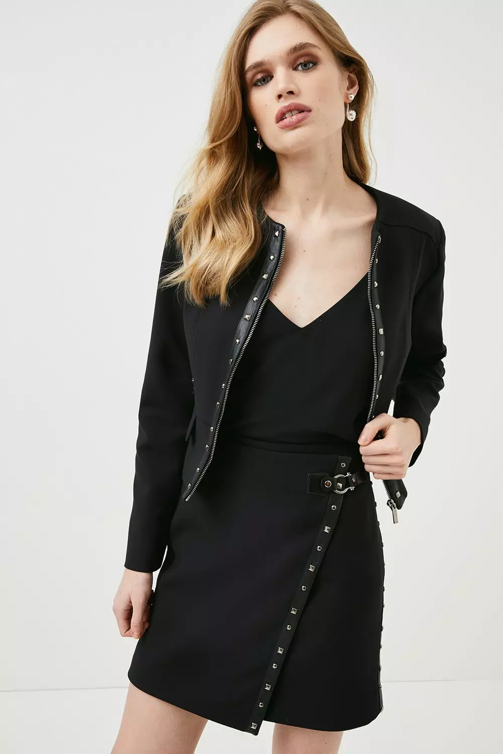 Compact Stretch Stud Detail A Line Skirt Karen Millen Very well made.